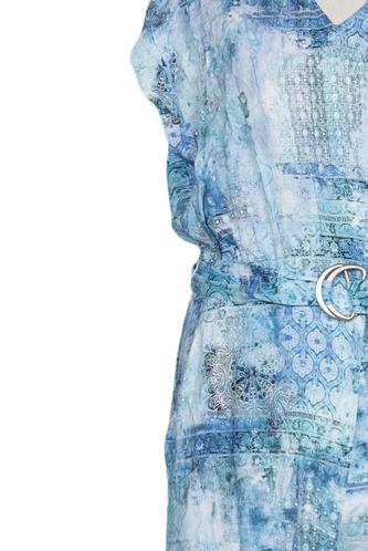 | Details | Kurzarm, Bindegürtel, V-Ausschnitt, Motivprint |