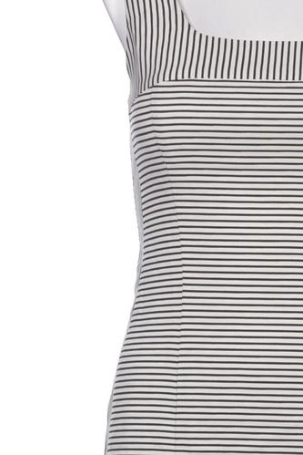 | Details | Jersey, ärmellos, Rundhals, Reißverschluss/Knöpfe hinten, Streifen |