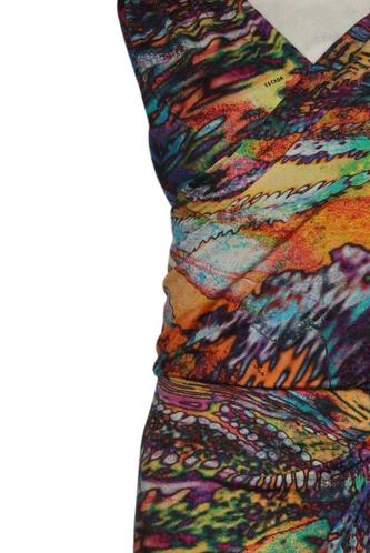 | Details | Jersey, ärmellos, Wickeloptik, V-Ausschnitt, Motivprint |
