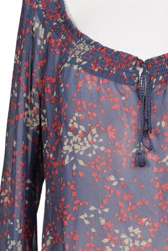 | Details | Chiffon, Langarm, V-Ausschnitt, verschlusslos, Gummizug/Tunnelzug, Floral |