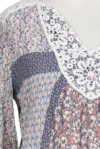 | Details | Jersey, Spitze, Lochstickerei, Langarm, V-Ausschnitt, verschlusslos, Floral |