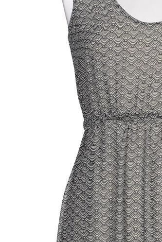 | Details | Chiffon, ärmellos, V-Ausschnitt, Gummizug/Tunnelzug, Motivprint |