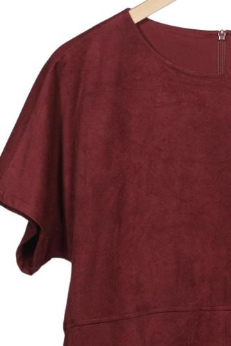 | Details | Wildlederoptik, Kurzarm, Rundhals, Einfarbig |