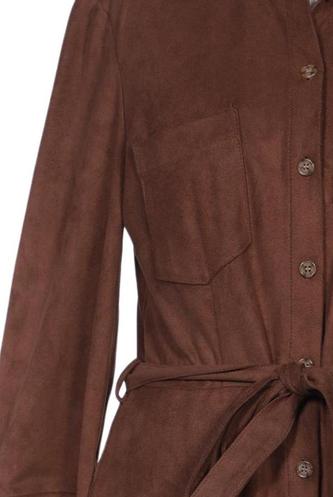 | Details | Wildlederoptik, Langarm, Bindegürtel, Rundhals, Front Knopfleiste, Einfarbig |