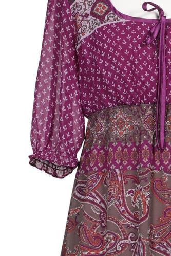 | Details | Rüschen, Chiffon, Kurzarm, Rundhals, Gummizug/Tunnelzug, Paisley |