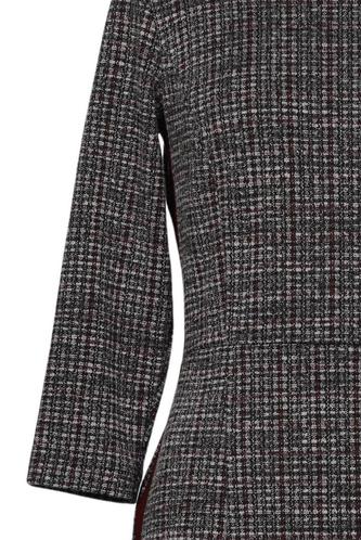 | Details | Grobstrick, Dreiviertelarm, Rundhals, Reißverschluss/Knöpfe hinten, Kariert |