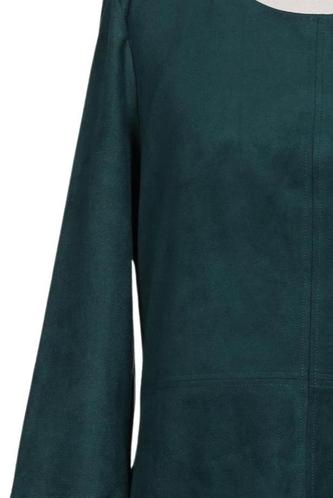 | Details | Wildlederoptik, Dreiviertelarm, Rundhals, Reißverschluss/Knöpfe hinten, Einfarbig |