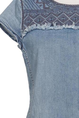 | Details | Fransen, Jeans, Stickerei, Kurzarm, Rundhals, Reißverschluss/Knöpfe hinten, Ethno |