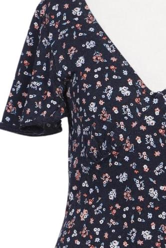 | Details | Jersey, Kurzarm, V-Ausschnitt, Floral |