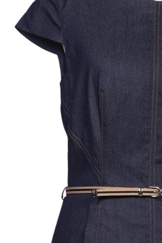 | Details | Jeans, Kurzarm, Bindegürtel, Rundhals, Reißverschluss/Knöpfe hinten, Einfarbig |