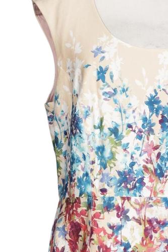 | Details | Satin, ärmellos, Rundhals, Reißverschluss/Knöpfe hinten, Floral |