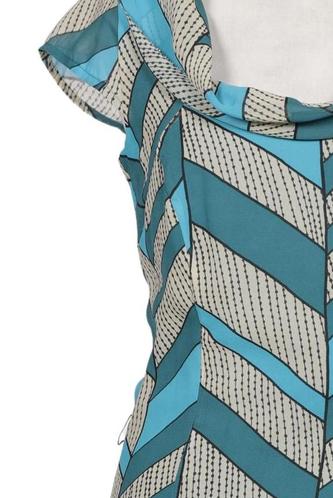 | Details | Kurzarm, V-Ausschnitt, Reißverschluss/Knöpfe hinten, Streifen |