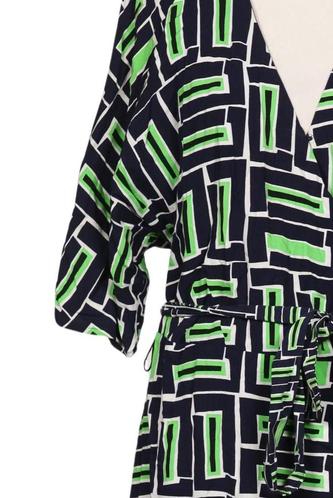 | Details | Kurzarm, Bindegürtel, V-Ausschnitt, Motivprint |