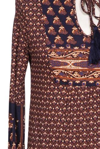 | Details | Fransen, Jersey, Langarm, V-Ausschnitt, Ethno |