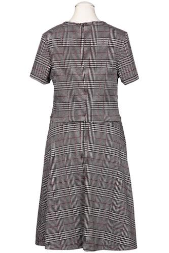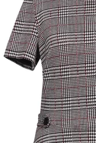 | Details | Grobstrick, Kurzarm, Rundhals, Reißverschluss/Knöpfe hinten, Kariert |
