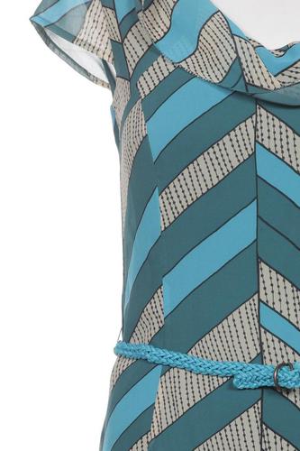 | Details | Chiffon, Kurzarm, Bindegürtel, V-Ausschnitt, Streifen |