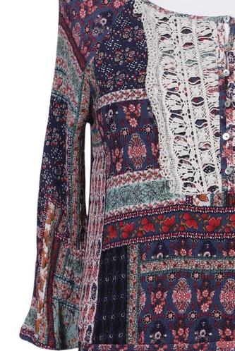 | Details | Jersey, Spitze, Lochstickerei, Dreiviertelarm, Rundhals, Ethno |