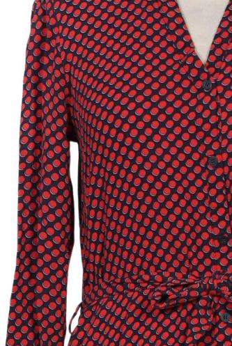 | Details | Jersey, Langarm, Bindegürtel, V-Ausschnitt, Front Knopfleiste, Punkte |