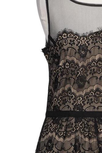 | Details | Tüll, ärmellos, Rundhals, Reißverschluss/Knöpfe hinten, Floral |