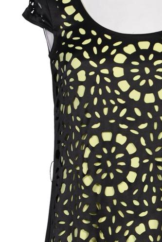 | Details | Satin, Cutouts, Kurzarm, Rundhals, Motivprint |