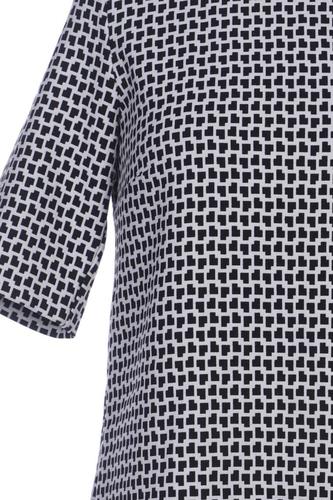| Details | Grobstrick, Kurzarm, Rundhals, Reißverschluss/Knöpfe hinten, Motivprint |