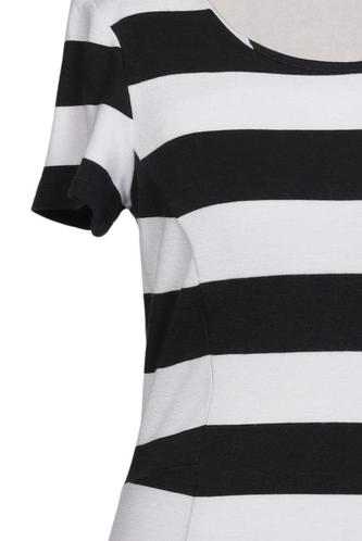| Details | Jersey, Kurzarm, Rundhals, Reißverschluss/Knöpfe hinten, Streifen |