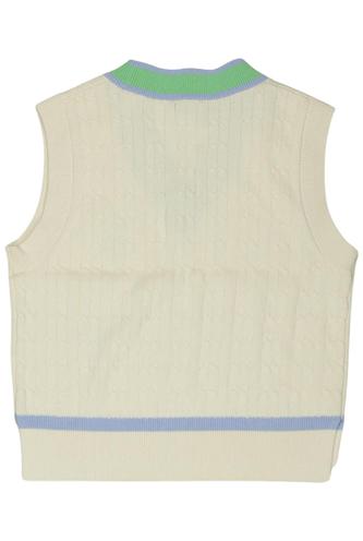 | Details | Grobstrick, ärmellos, V-Ausschnitt, Markenlogo, Streifen |