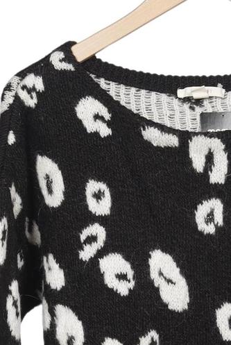 | Details | Grobstrick, Langarm, Rundhals, Leopard |