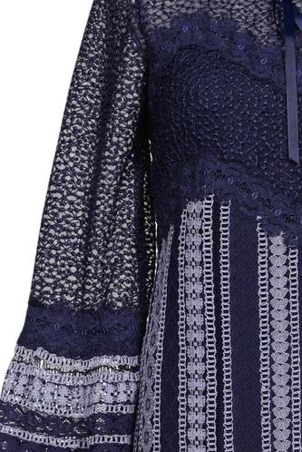 | Details | Spitze, Lochstickerei, Dreiviertelarm, Rundhals, Reißverschluss/Knöpfe hinten, Streifen |