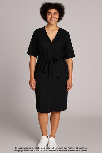 | Details | Kurzarm, Bindegürtel, V-Ausschnitt, Reißverschluss/Knöpfe hinten, Einfarbig |