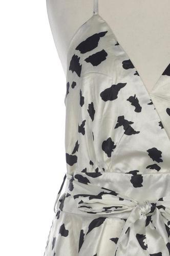 | Details | Satin, Rüschen, ärmellos, V-Ausschnitt, Motivprint |
