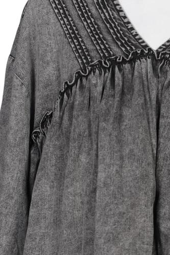 | Details | Fransen, Stickerei, Langarm, V-Ausschnitt, verschlusslos, Used Look |