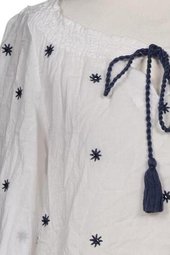| Details | Fransen, Stickerei, Dreiviertelarm, Rundhals, verschlusslos, Ethno, Punkte |
