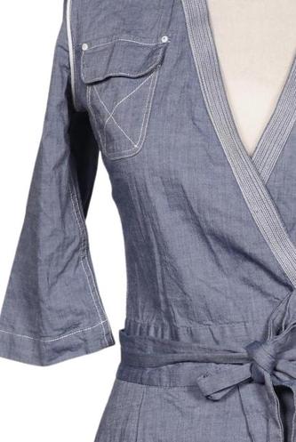 | Details | Jeans, Dreiviertelarm, Bindegürtel, Wickeloptik, V-Ausschnitt, Einfarbig |