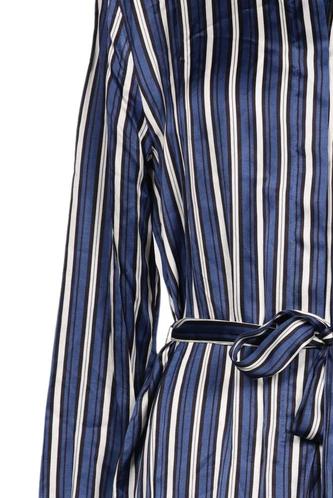 | Details | Satin, Langarm, Bindegürtel, Rundhals, Front Knopfleiste, Streifen |