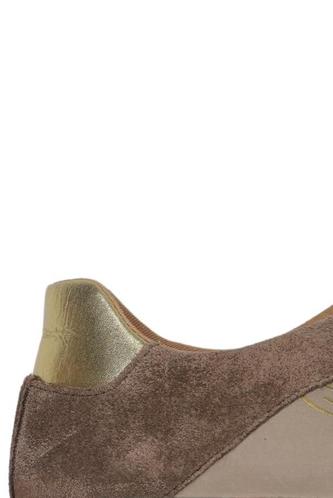 | Details | Wildlederoptik, Schnürung, Gummi, metallic, Markenlogo |