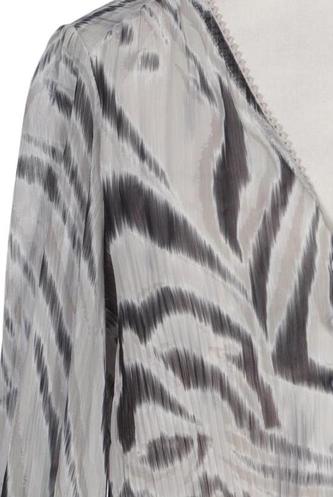 | Details | Chiffon, Langarm, V-Ausschnitt, verschlusslos, Motivprint |