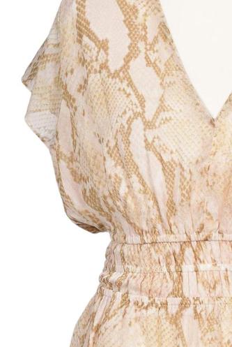 | Details | Rüschen, Chiffon, Kurzarm, V-Ausschnitt, Gummizug/Tunnelzug, Motivprint |