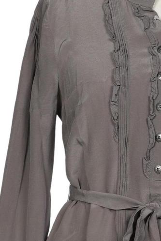 | Details | Satin, Rüschen, Langarm, Bindegürtel, V-Ausschnitt, Front Knopfleiste, Einfarbig |