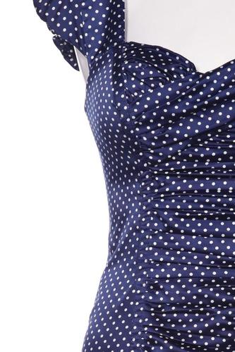 | Details | Satin, Cutouts, Kurzarm, V-Ausschnitt, Reißverschluss/Knöpfe hinten, Punkte |