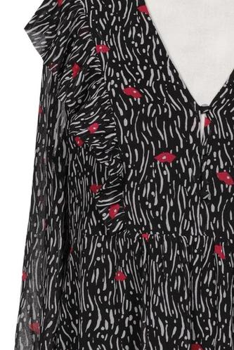 | Details | Rüschen, Chiffon, Langarm, V-Ausschnitt, Floral |