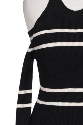 | Details | Cutouts, Grobstrick, Dreiviertelarm, V-Ausschnitt, Streifen |