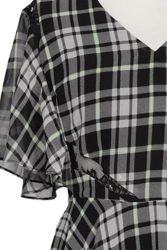 | Details | Chiffon, Kurzarm, V-Ausschnitt, Kariert |