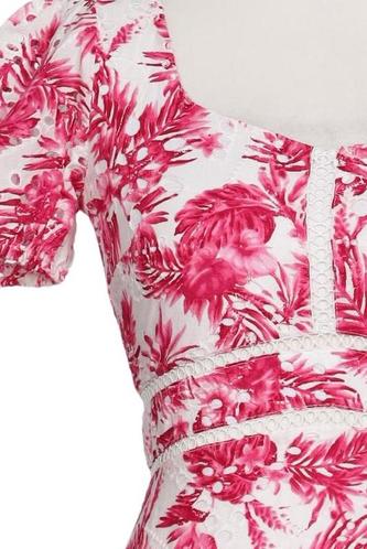 | Details | Kurzarm, V-Ausschnitt, Reißverschluss/Knöpfe hinten, Floral |