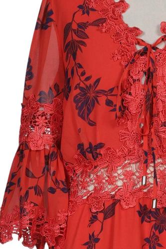 | Details | Spitze, Rüschen, Chiffon, Lochstickerei, Dreiviertelarm, V-Ausschnitt, Floral |
