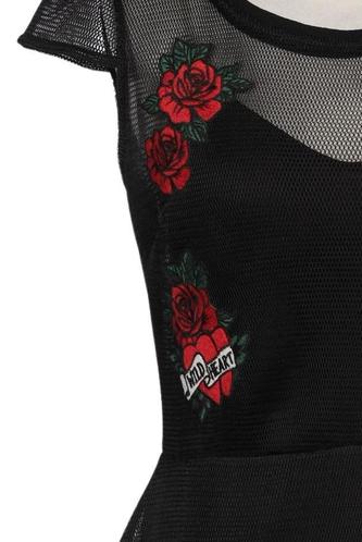 | Details | Stickerei, Tüll, Kurzarm, Rundhals, Reißverschluss/Knöpfe hinten, Floral |