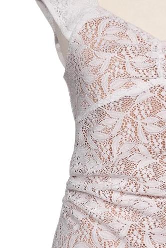 | Details | Spitze, Kurzarm, V-Ausschnitt, Reißverschluss/Knöpfe hinten, Floral |