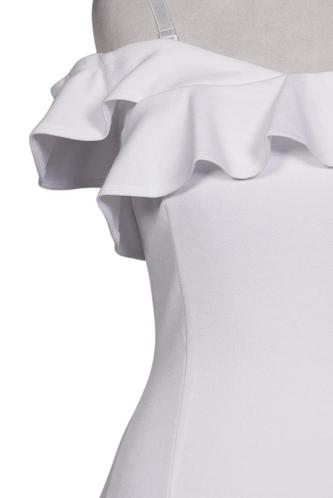 | Details | Jersey, Rüschen, ärmellos, V-Ausschnitt, Reißverschluss/Knöpfe hinten, Einfarbig |