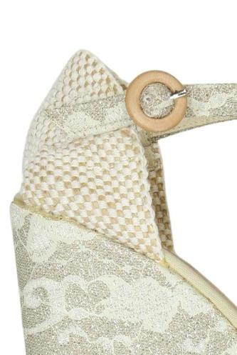 | Details | Canvas, Spitze, Schnallen, Metall, Gummi, Bast, Floral |