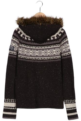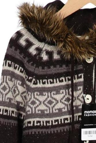 | Details | Webpelz, Grobstrick, Langarm, Rundhals, Kapuze, Front Knopfleiste, Ethno |